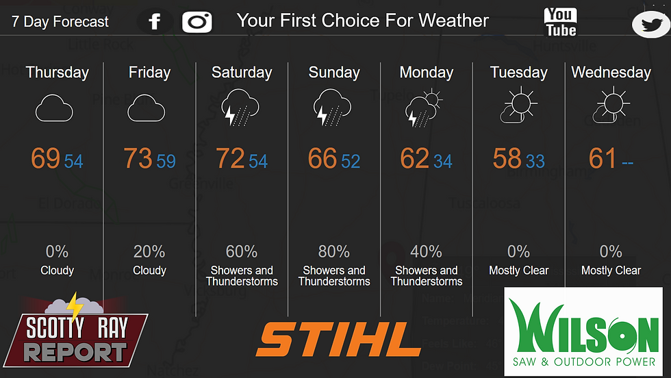 Showers likely, with thunderstorms also possible after 3pm. Cloudy, with a high near 73. South wind 10 to 15 mph, with gusts as high as 20 mph. Chance of precipitation is 60%. New rainfall amounts between a tenth and quarter of an inch, except higher amounts possible in thunderstorms.